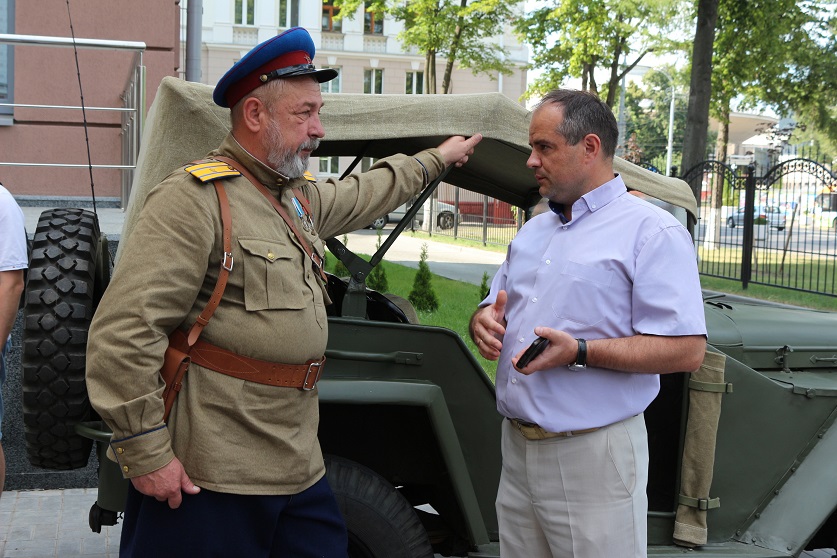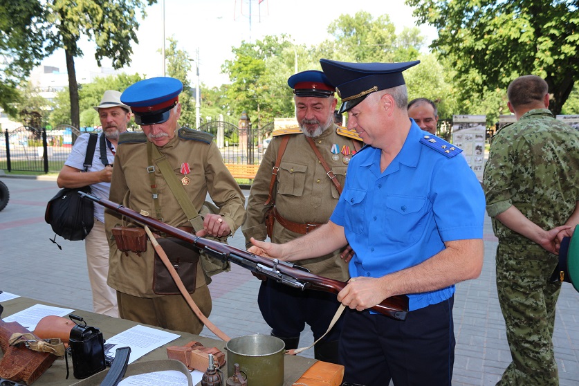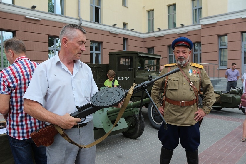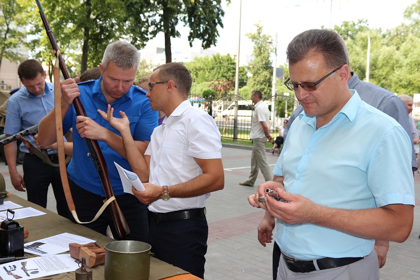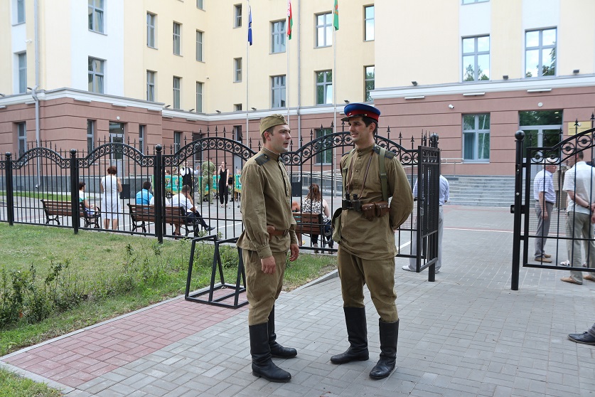 На площадке перед административным зданием областного следствия была развернута экспозиция военной техники и оружия времен Великой Отечественной войны, установлены информационные стенды. Военный оркестр Гомельской пограничной группы исполнял произведения на военную и патриотическую тематику.