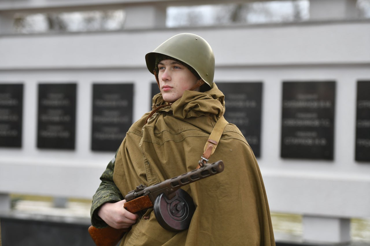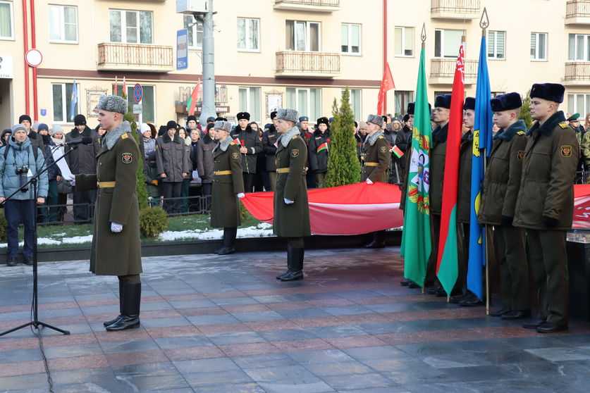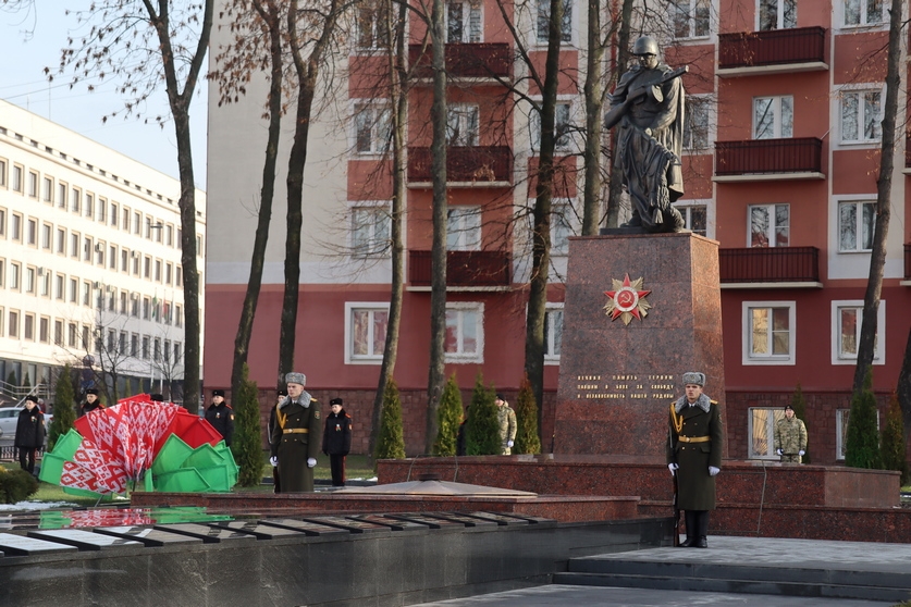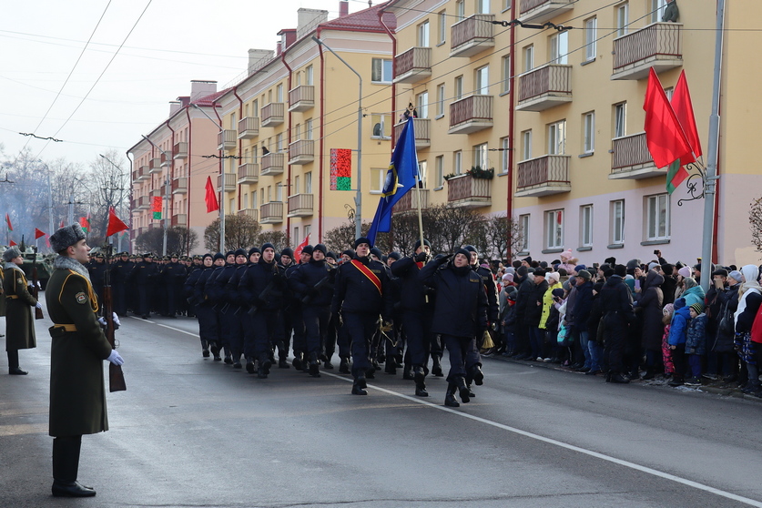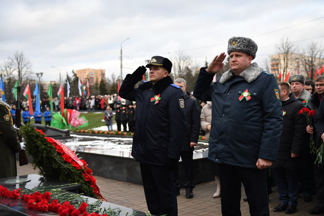 В память о героизме предков современные защитники Отечества – сотрудники Следственного комитета Республики Беларусь, прошли торжественным маршем в парадном расчете военнослужащих Гомельского гарнизона.