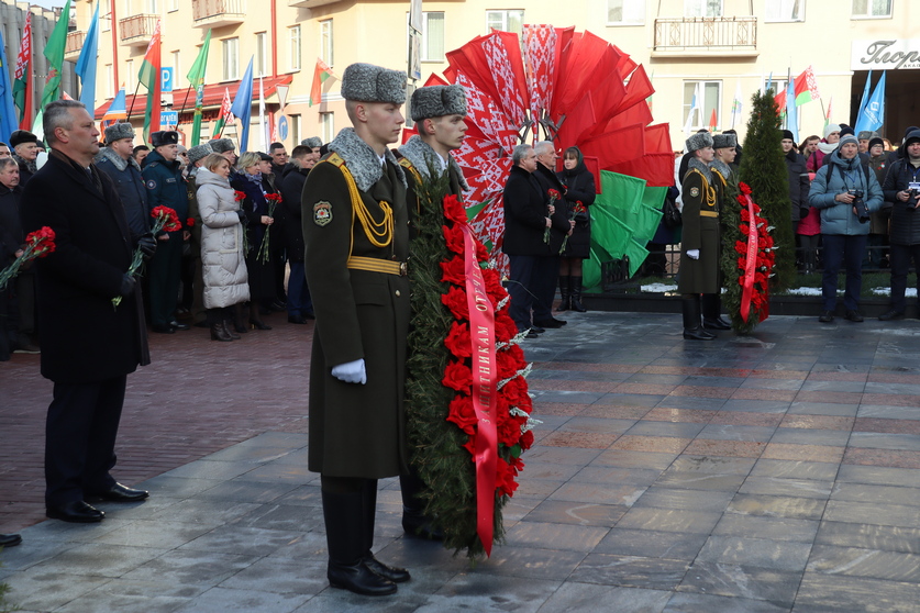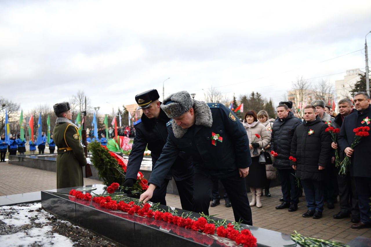 Гомельчане-патриоты возложили цветы к монументу и почтили память погибших минутой молчания.