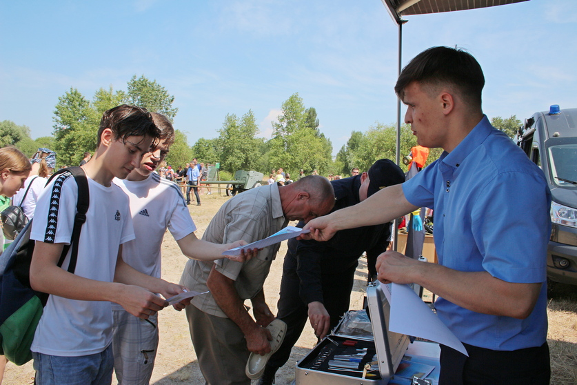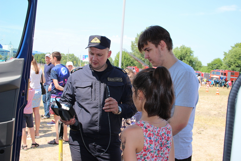 С деятельностью Следственного комитета юных горожан знакомили сотрудники криминалистического отдела и управления кадров УСК по Гомельской области. На протяжении дня работала выставка криминалистической техники. В ходе непринужденного общения сотрудники рассказывали подросткам о профессии следователя, раздавали листовки, объясняли порядок работы на местах происшествий, демонстрировали возможности технико-криминалистических средств. Посетители выставки с удовольствием тестировали работу переносного лабораторного комплекса для обнаружения биологических следов «Светоч-К», металлоискателя и прибора для измерения расстояния. Смышленая детвора отвечала на вопросы тематической викторины и получала жетоны для приобретения сувениров от организаторов мероприятия. Молодежь с интересом общалась с представителями следственного ведомства, используя уникальную возможность открытого диалога.