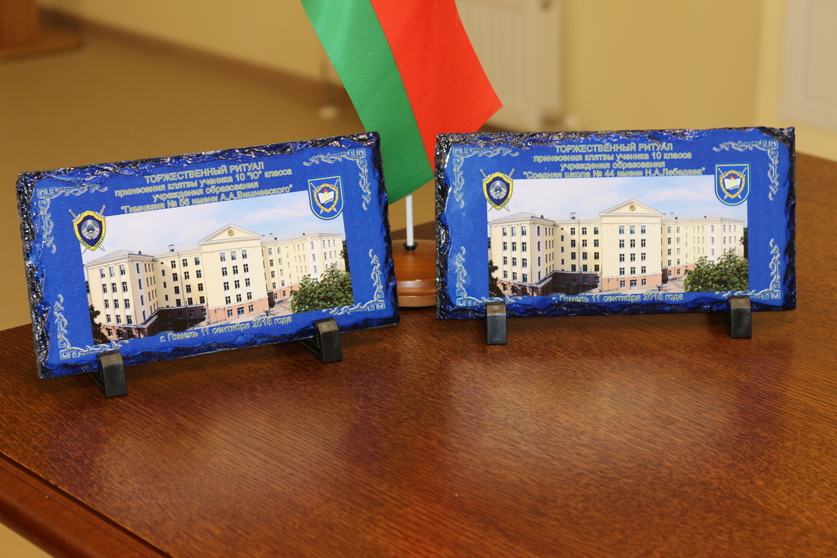 После завершения ритуала учащиеся классов юридической направленности гимназии №56 и СШ №44 г.Гомеля, функционирующих под эгидой УСК, перед лицом своих сверстников и молодых офицеров пообещали быть преданными Родине, служить примером честности, справедливости и благородства.