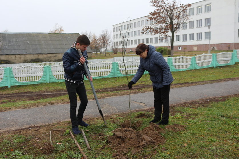 В Рогачеве три школьника взамен сломанных деревьев посадили новые