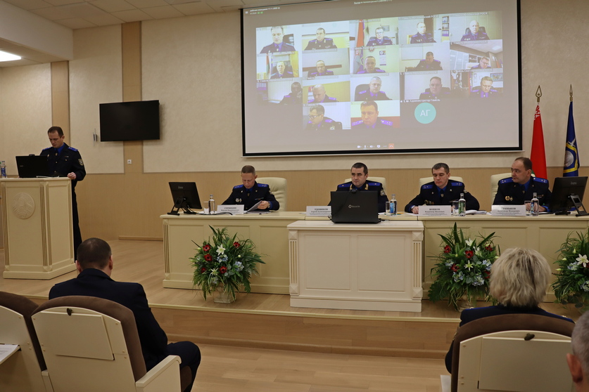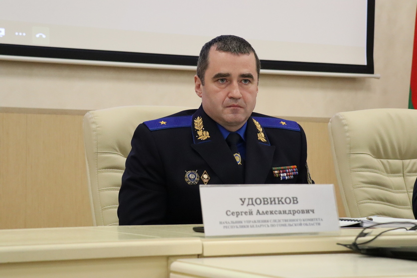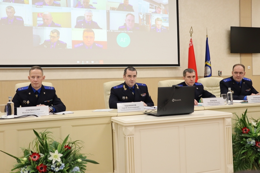 В управлении Следственного комитета по Гомельской области состоялось оперативное совещание в режиме видеоконференцсвязи при начальнике управления Сергее Удовикове.