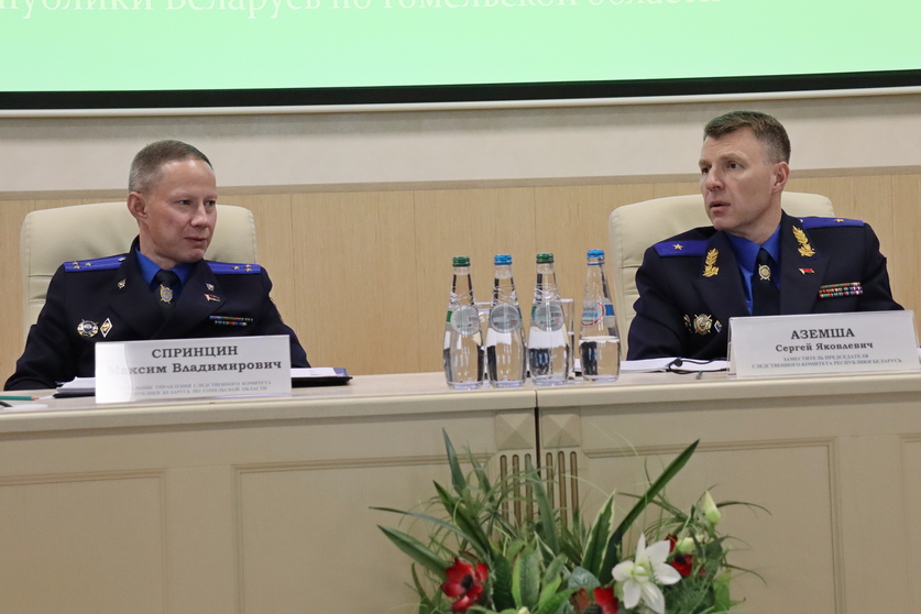В управлении Следственного комитета по Гомельской области состоялось оперативное совещание по результатам работы следственных подразделений в первом квартале текущего года и состоянию регистрационно-учетной дисциплины. Актуальные вопросы служебной деятельности рассмотрены с участием заместителя Председателя Следственного комитета Сергея Аземши и начальника УСК по Гомельской области Максима Спринцина.