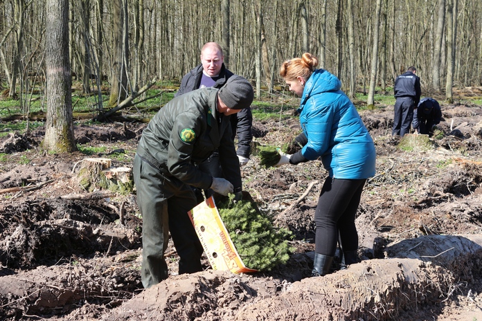 После знакомства с деятельностью лесного хозяйства представители УСК по Гомельской области на практике прочувствовали нелегкий труд лесоводов. На одной из делянок лесничества, расчищенной от старых насаждений, сотрудники посадили около трех тысяч саженцев ели.