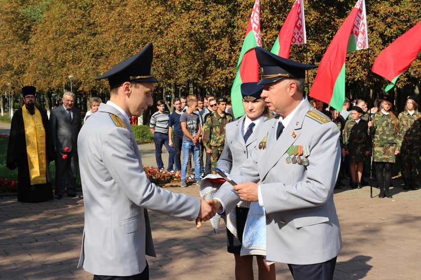 11 сентября в Гомеле возле мемориального комплекса «Курган Славы» состоялся торжественный ритуал принесения Присяги сотрудника Следственного комитета Республики Беларусь. В присутствии горожан и многочисленных приглашенных гостей заместитель начальника УСК по Гомельской области Аркадий Третьяков и начальник управления кадров Александр Гулис приняли Присягу у молодых сотрудников следственных подразделений области.