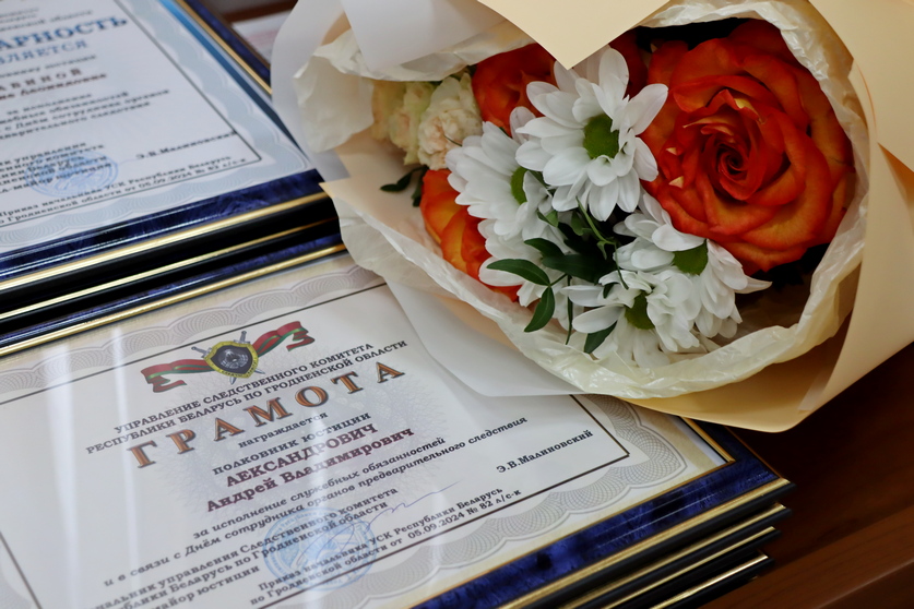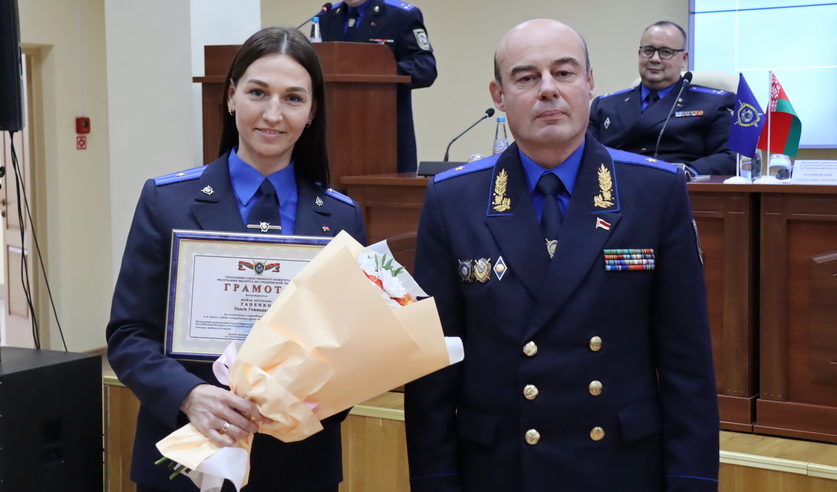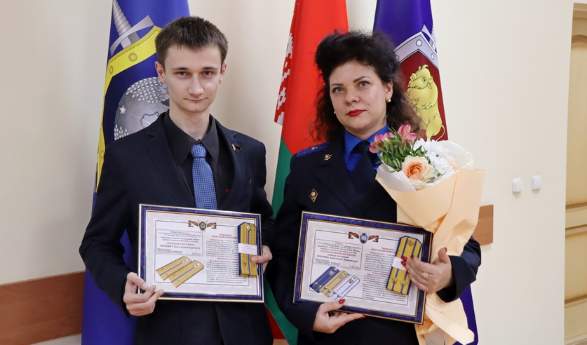 Следователь по особо важным делам Гродненского межрайонного отдела Следственного комитета Анастасия Боровик признается, что для нее сегодня двойной праздник, день, когда руководитель управления вручил ей погоны подполковника юстиции, а ее ученику – лейтенантские погоны.