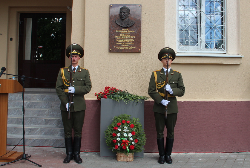 2 июля в областном центре состоялось еще одно неординарное событие. На здании Гродненского областного военного комиссариата в торжественной обстановке была открыта мемориальная доска Герою Советского Союза Ивану Даниловичу Лебедеву. Человеку без преувеличения легендарному. Участвуя в боях под Ленинградом и на Карельском фронте, он получил тяжёлое ранение в голову и руку. В 1943 году гвардии капитан отличился в битве за Днепр в Полтавской области. Отражая вражескую контратаку, уничтожил три танка и около взвода вражеской пехоты. За этот подвиг удостоен звания Героя Советского Союза. Участвовал в Параде Победы, неся штандарт 3-го Украинского фронта.