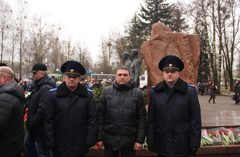 После возложения венка к обелиску погибшим в Афганистане воинам, начальник УСК по Гродненской области Олег Шандарович и заместитель начальника управления Евгений Пашковский тепло пообщались с выполнявшим интернациональный долг в Афганистане ветераном органов предварительного расследования подполковником юстиции в запасе Александром Радаком.