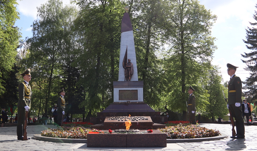 С площади Ленина все участники мероприятия выдвинулись в парк имени Жилибера, где состоялась торжественная церемония возложения цветов и венков к памятнику «Братская могила советских воинов и партизан, погибших в годы Великой Отечественной войны». После чего память ушедших защитников Родины, героически сражавшихся за ее свободу, участники церемонии почтили минутой молчания.