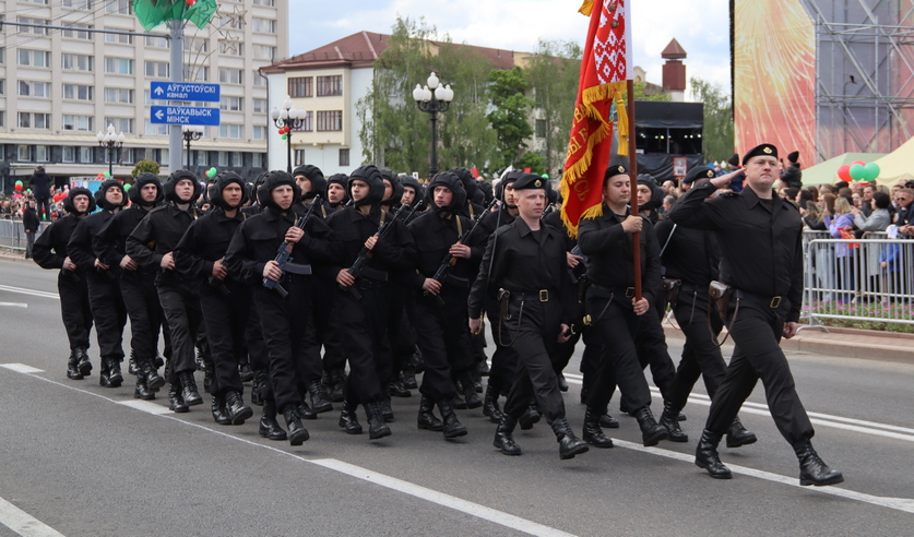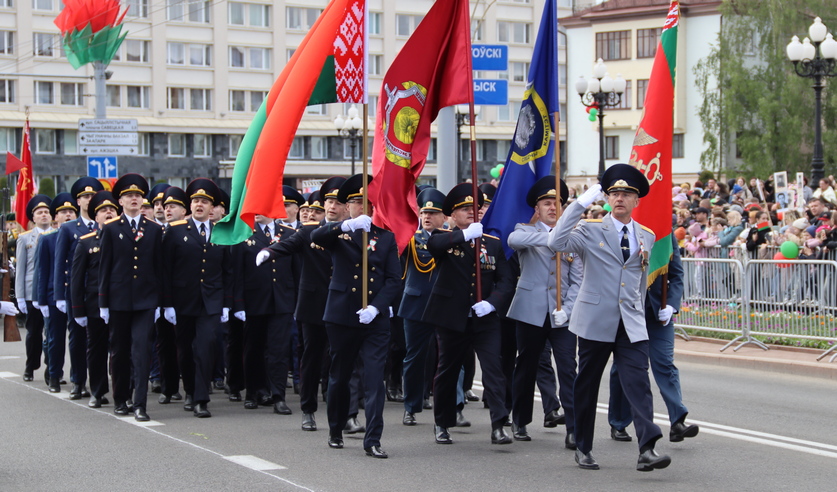 Впереди расчета флаги и знамёна каждого из областных ведомств. Это не просто парад силовых структур, это символ единства, слаженности и общей ответственности за справедливость и безопасность в регионе. Государственные органы входящие в систему обеспечения национальной безопасности надежно стоят на страже прав и законных интересов граждан, общества и государства, обеспечивая в Республике Беларусь верховенство права, закона и торжество справедливости.