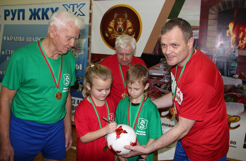 На память об игре каждый участник получил не только комплект футбольной формы, но и эксклюзивную медаль. А на подаренном ассоциацией «Белорусская федерация футбола» мяче все оставили свои автографы.