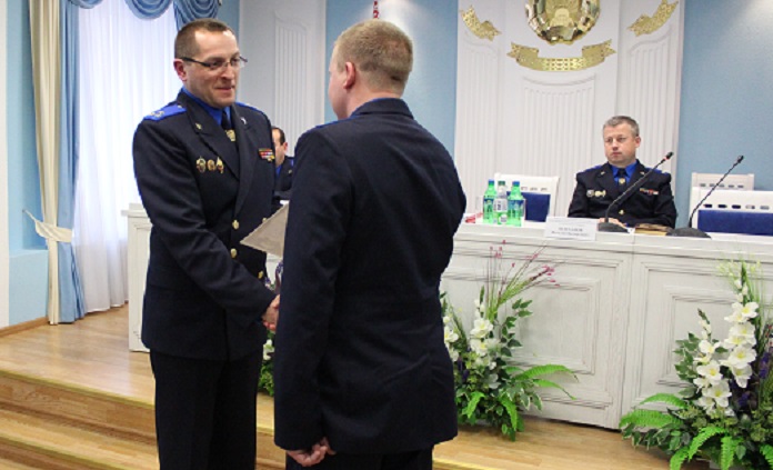 на фото: вручение благодарности молодому сотруднику Лобосову С.В.(Чаусский РОСК)