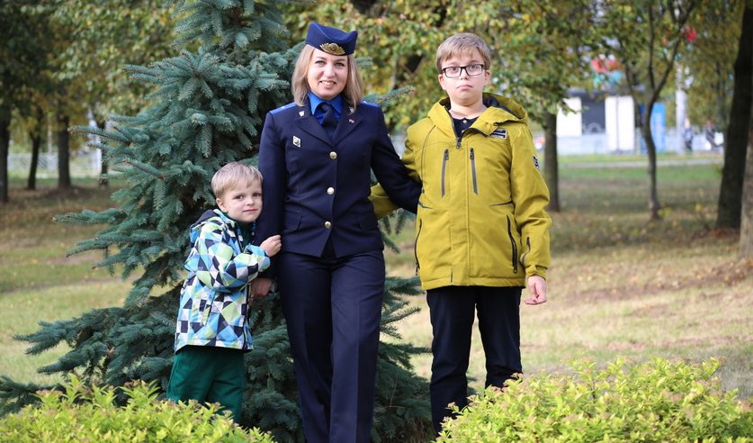 Начальник отдела защиты государственных секретов и документационного обеспечения УСК по Могилевской области Инесcа Самуйлова и ее сыновья Илья и Стас (8 и 6 лет).