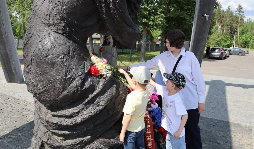Первая на нашем пути – скульптурная композиция «Беларусь – скорбящая мать» – к ней дети возлагают цветы. Проходит минута молчания.