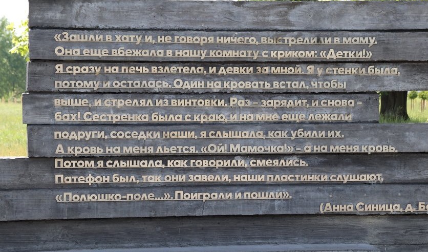 И таких записей - здесь много. В них застыл весь ужас трагедии. В голосе экскурсовода слышится дрожь, когда она произносит цитаты-воспоминания выживших жителей деревни. Дети и взрослые внимательно слушают каждое слово. Кто-то из ребят шепчет маме: «Война - это плохо и страшно!».
