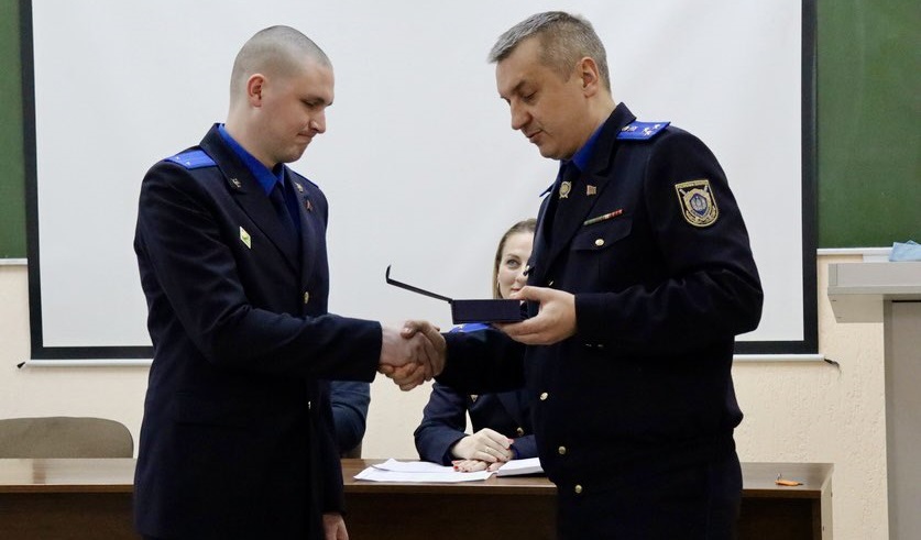 В ходе мероприятия начальник управления кадров и идеологической работы УСК Сергей Каралев выступил с важной и приятной миссией и вручил заветные титулы лучшему молодому сотруднику по итогам 2024 года - следователю Горецкого районного отдела Следственного комитета Тимофею Бедулину и его наставнику Артему Лепскому.