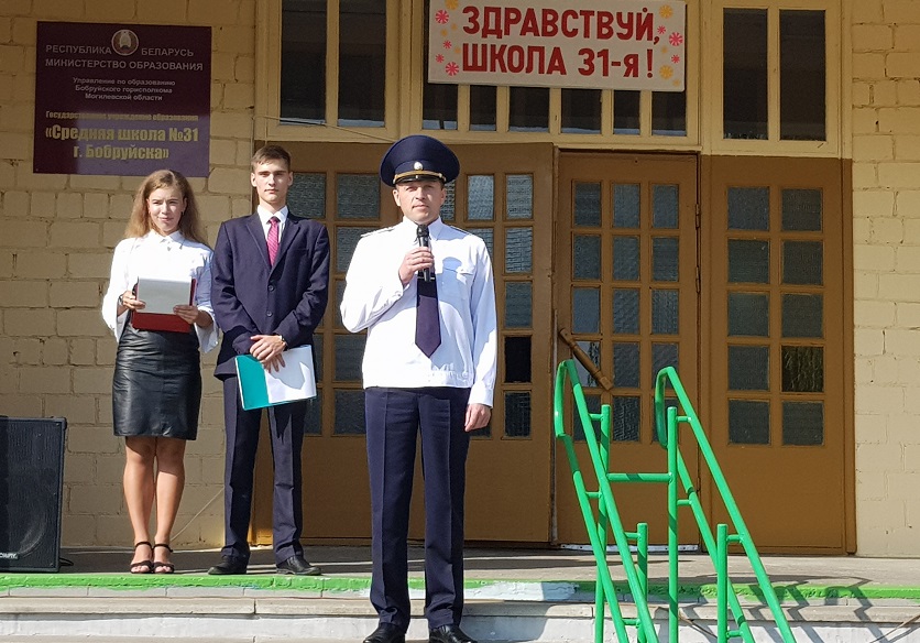 Начальник управления Следственного комитета по Могилевской области Андрей Лис на торжественной линейке поздравил школьников и учителей с Днем знаний и объявил об образовании 10 «А» класса юридической направленности.