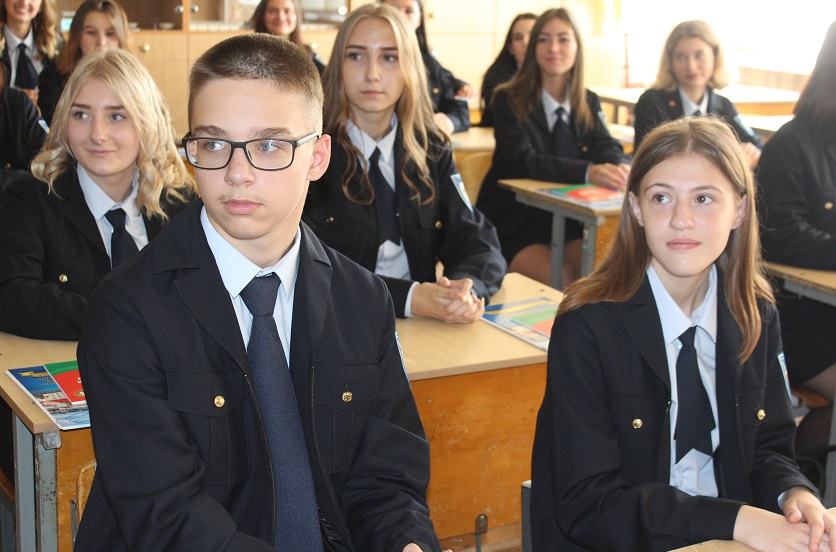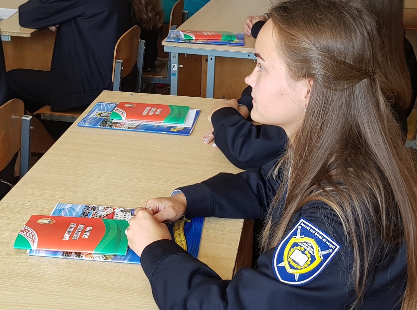 После окончания торжественного мероприятия главный следователь области провел в классном кабинете первый открытый урок для школьников профильного класса. Андрей Иванович рассказал о запланированных мероприятиях в рамках взаимодействия управления Следственного комитета и школы, о специфике работы в ведомстве, о требованиях к кандидатам на службу. В завершении познавательной лекции полковник ответил на вопросы школьников и подарил каждому ученику Конституцию Республики Беларусь, объясняя, что это основной Закон Республики Беларусь, имеющий высшую юридическую силу и закрепляющий основополагающие принципы и нормы правового регулирования важнейших общественных отношений.