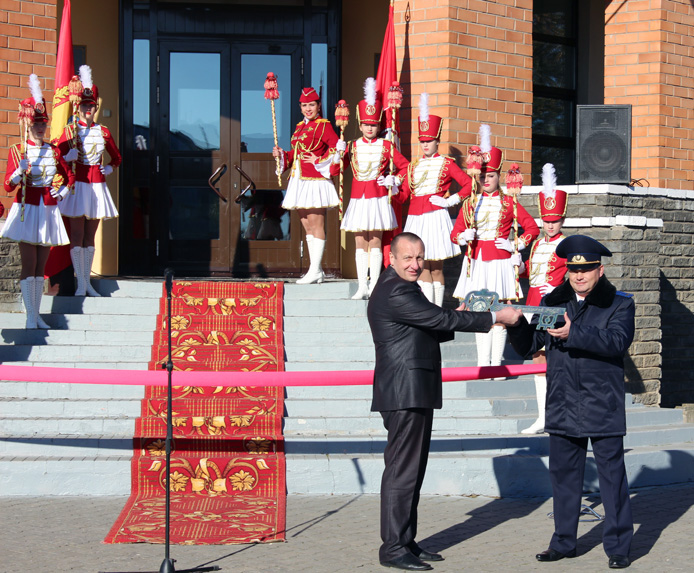 Много напутственных и добрых слов в адрес новоселов прозвучало от гостей в этот необычно теплый и красивый осенний день. В торжественной обстановке начальник следственного подразделения подполковник юстиции Игорь Жуковский получил от руководства Дрибинского райисполкома символический ключ от здания.