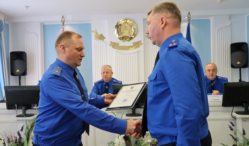 В завершение он поблагодарил могилевских следователей за добросовестную службу, пожелал профессиональных достижений и вручил ведомственные награды и погоны в связи с присвоением очередных специальных званий.
