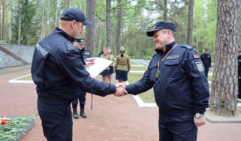 Здесь же у подножия мемориала состоялось награждение победителей и призеров конкурса профессионального мастерства руководящего состава УСК по Могилевской области и его подчиненных подразделений.