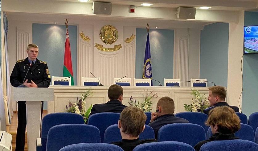Продолжил выступление лейтенант юстиции Михаил Морозов, следователь Могилевского межрайонного отдела – выпускник следственно-экспертного факультета Академии МВД 2021 года. На личном примере молодой следователь рассказал участникам мероприятия о преимуществах обучения на факультете и о своем становлении, как следователя.