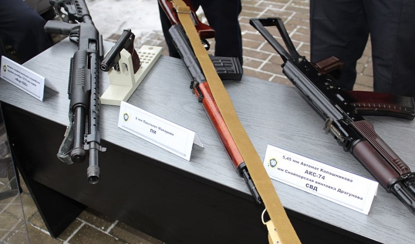 На территории управления Следственного комитета для участников мероприятия развернули работу две тематические площадки с выставкой вооружения и передвижной криминалистической лабораторией.