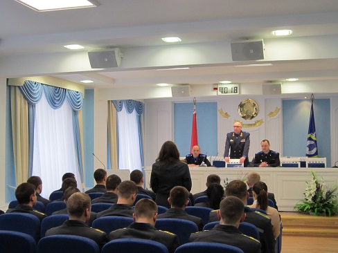 В управлении Следственного комитета по Могилевской области состоялась встреча начальника управления генерал–майора юстиции Александра Ракусова с курсантами Академии МВД, проходившими производственную практику в следственных подразделениях Могилевской области.