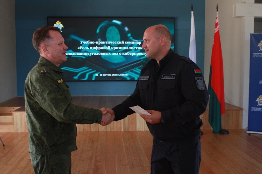 Делегация Следственного комитета приняла участие в двухдневном международном научно-практическом семинаре «Роль цифровой криминалистики в расследовании уголовных дел о киберпреступлениях», который состоялся в Иркутской области. Среди представителей белорусского ведомства начальник УСК по Могилевской области Владимир Шишко, начальник главного следственного управления Александр Агафонов и старший следователь по особо важным делам главного управления цифрового развития предварительного следствия Александр Воронько.