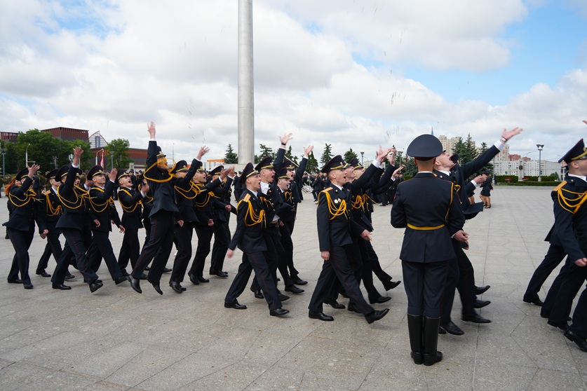 Завершился выпускной церемониал торжественным маршем молодых офицеров. По традиции выпускники подбросили монеты на удачу, выражая тем самым крепкую уверенность в успех на выбранном жизненном пути.