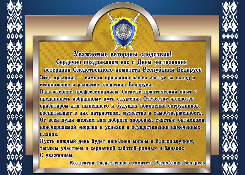 В знак глубокого уважения и признательности к тем, кто посвятил свою жизнь служению Закону, Справедливости и Отечеству, Председателем Следственного комитета принято решение о введении нового ведомственного праздника – Дня чествования ветеранов Следственного комитета Республики Беларусь.