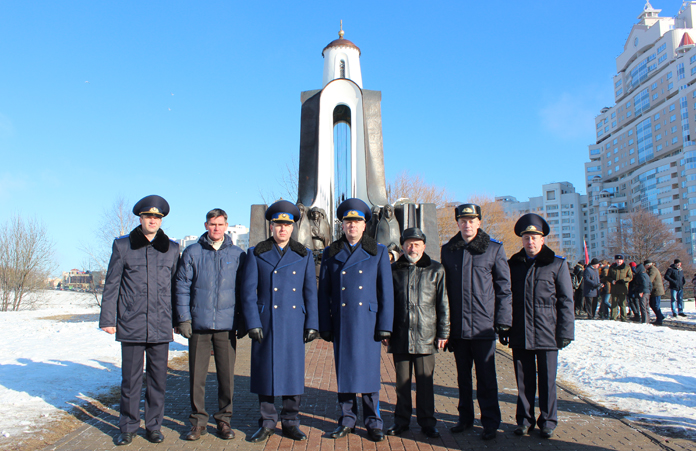 В 28-ю годовщину вывода советских войск из Афганистана почтить память погибших, возложить венки и цветы к Памятнику воинам-интернационалистам на острове Мужества и Скорби пришли также воины-интернационалисты: сотрудник Следственного комитета Леонид Сасункевич и Владимир Быков, заслуженный юрист БССР, ветеран Республиканского общественного объединения Следственного комитета.
