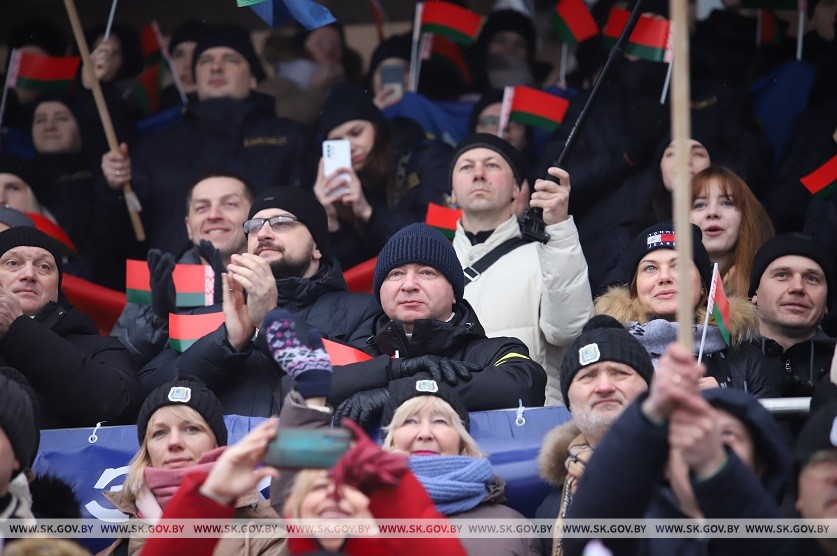 На протяжении всего соревновательного дня на трибунах царила теплая и дружественная атмосфера. Поистине народный праздник в Раубичах получился ярким и зрелищным. Выступления артистов, увлекательные конкурсы, масленичные игры с ростовыми куклами и аниматорами и, конечно же, ароматные вкусные блины.
