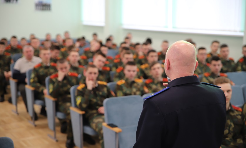 В Минском городском кадетском училище состоялся Урок Памяти, приуроченный к 77-й годовщине Победы в Великой Отечественной войне. В рамках проведения данного мероприятия с учащимися встретился Председатель Следственного комитета Дмитрий Гора.