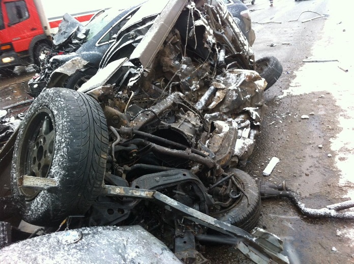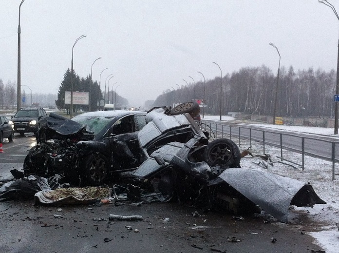 Утром 22 декабря водитель автомобиля BMW 525, двигаясь со стороны ул. Якубовского по ул. Минское шоссе, не справился с управлением, повредил турникетное ограждение и выехал на полосу встречного движения, где и произошло столкновение с автомобилем Mazda.