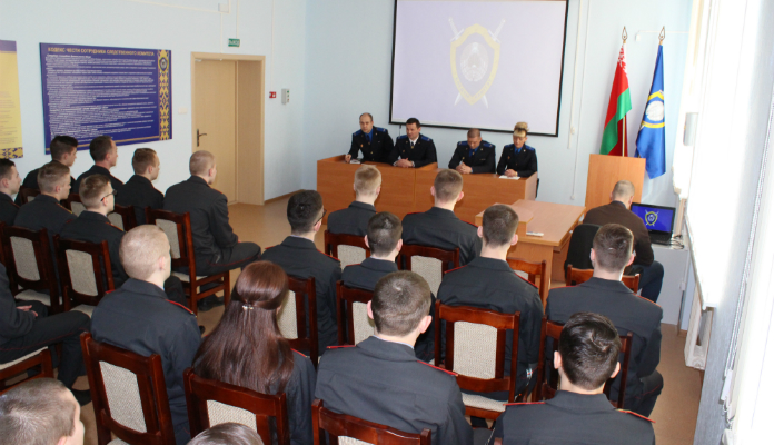 В этот раз, с первокурсниками следственно-экспертного факультета поделились практическим опытом и впечатлениями от профессии следователи Октябрьского (г. Минска) РОСК.