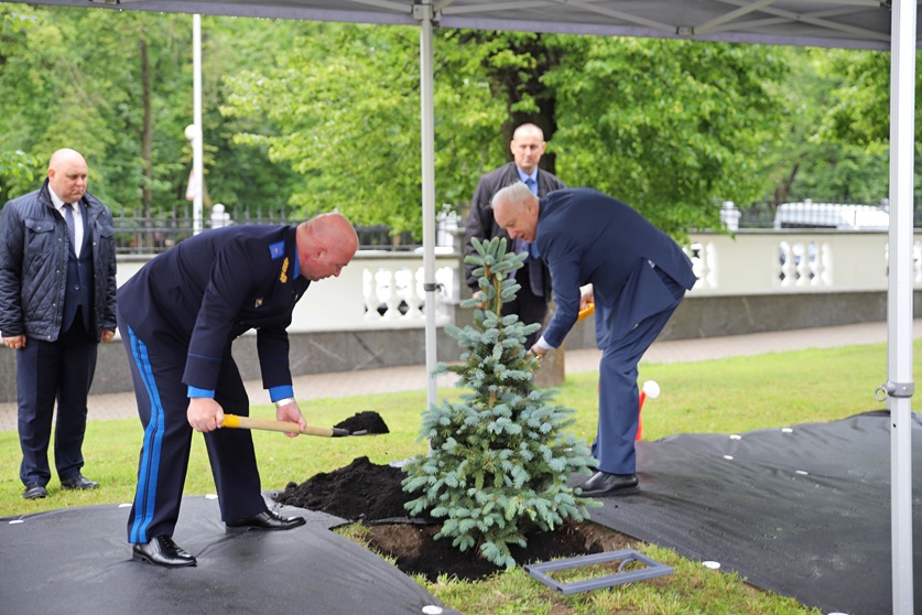 Помимо этого, в знак нерушимой дружбы и сотрудничества между следственными ведомствами Республики Беларусь и Российской Федерации, а также в ознаменование 80-летия Великой Победы, председатели Следственных комитетов двух стран приняли участие в торжественной церемонии закладки аллеи почетных гостей. Мероприятие состоялось на территории центрального аппарата Следственного комитета Беларуси.