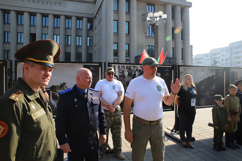 Справочно: на площадке у Центрального Дома офицеров организованы тематические выставочные экспозиции Министерств обороны Беларуси и России, Генеральной прокуратуры Республики Беларусь и государственного учреждения «Национальный архив Республики Беларусь».