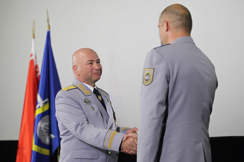 Глава ведомства поблагодарил офицеров за службу и подчеркнул особую значимость мероприятия, отметив, что не случайно государственные награды вручаются в преддверии священного для каждого белоруса праздника – Дня Победы.
