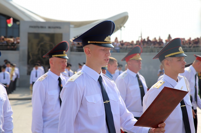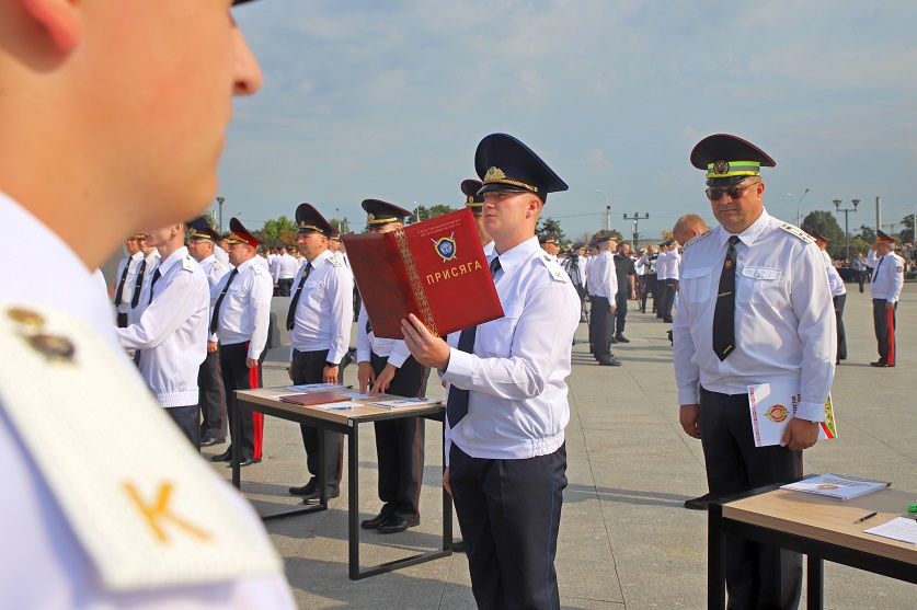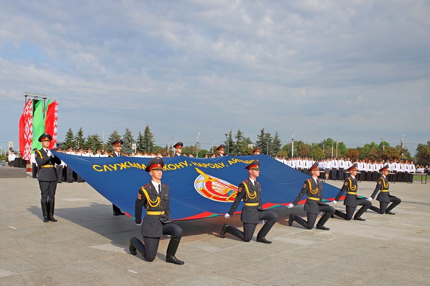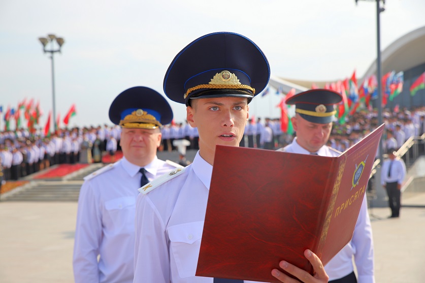 В Минске 29 августа на площади Государственного флага состоялся торжественный ритуал принесения присяги первокурсниками Академии МВД Республики Беларусь. Среди почетных гостей на мероприятии присутствовали Заместитель Государственного секретаря Совета Безопасности Александр Рахманов и Председатель Следственного комитета Дмитрий Гора.
