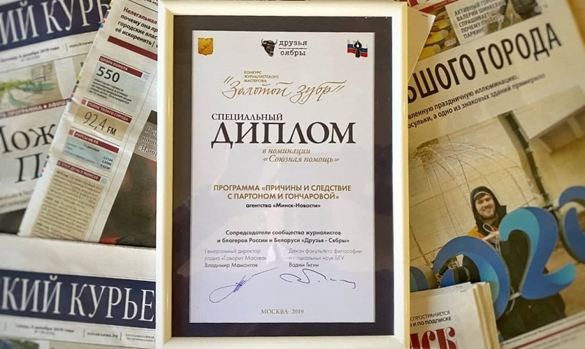 Программа агентства «Минск-Новости» «Причины и следствие с Партоном и Гончаровой» удостоена награды престижного конкурса журналистского мастерства «Золотой зубр» в номинации «Союзная помощь» – за материалы социально-экономической тематики, передает корреспондент агентства «Минск-Новости».