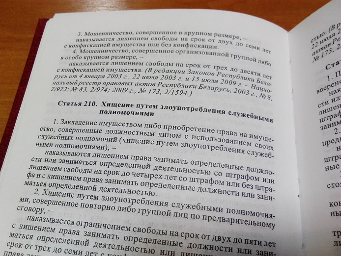 Статья 210 Уголовного кодекса Республики Беларусь. Хищение путем злоупотребления служебными полномочиями