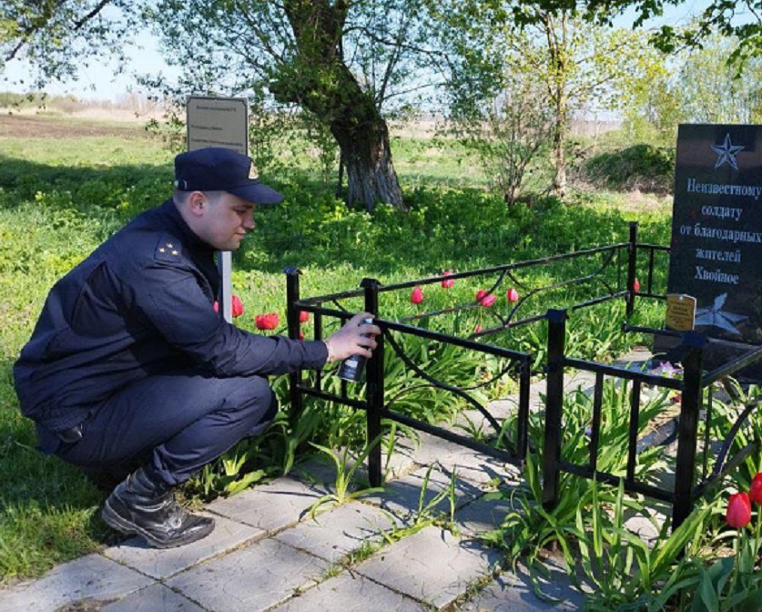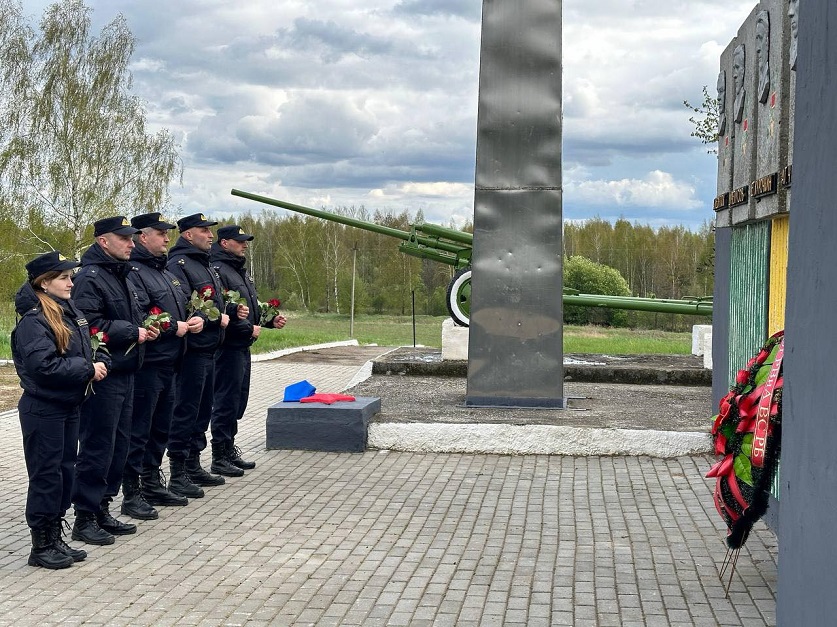После наведения порядка сотрудники управления и межрайонного отдела возложили цветы к обелиску, почтив память воинов, отдавших свои жизни за наше мирное небо.