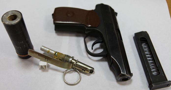 Мужчина был задержан благодаря бдительности сотрудников транспортной милиции. При личном обыске у него были обнаружены: маска с прорезями для глаз, два паспорта, самодельное взрывное устройство на основе осколочной гранаты к станковому гранатомету, пистолет, электронные носители, справка об участии в антитеррористической операции на территории Украины. Кроме того, в момент задержания на теле подозреваемого был надет армейский бронежилет.