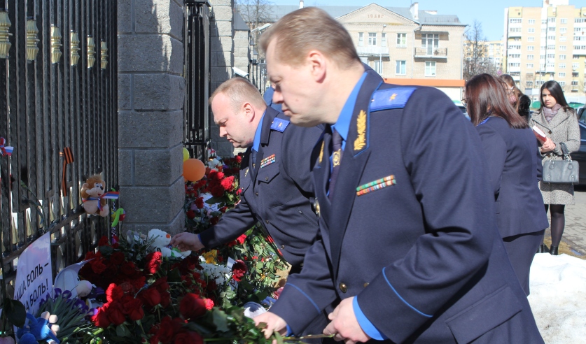 После этого делегация Следственного комитета, в которую входили офицеры центрального аппарата и управлений СК по Минску и Минской области, возложила цветы к импровизированному мемориалу у Посольства Российской Федерации в Республике Беларусь.