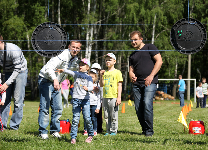Многообразием конкурсов удалось увлечь всех без исключения детей и их родителей. Командные эстафеты под названиями «Урожай», «Веселый футбол», «Дартс», «Конвейер», «Дружная семья» никого не оставили равнодушным. Особым спросом у маленьких участников пользовался конкурс по стрельбе из пневматической винтовки. В каждом воздушном шаре, являвшимся целью, находилась записка с названием приза.