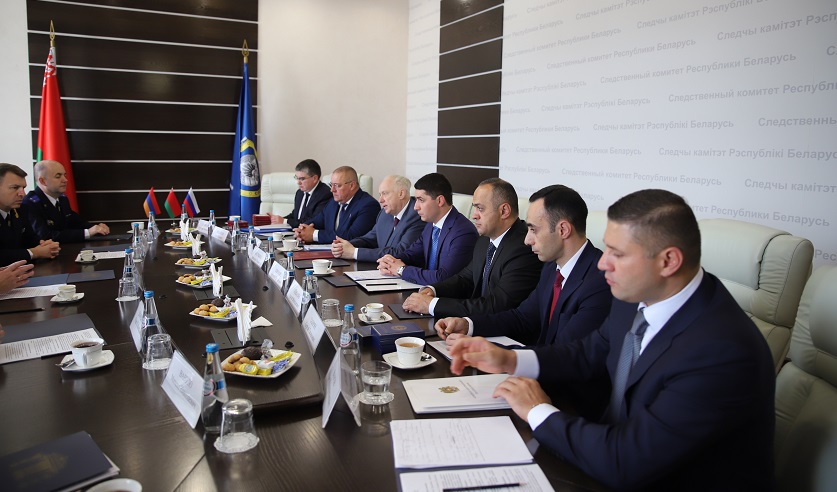 В рамках программы визита состоялась трехсторонняя встреча российской и армянской делегаций с руководством следственного ведомства Беларуси, в ходе которой обсуждались актуальные вопросы сотрудничества в сфере досудебного уголовного производства, расследования киберпреступлений.