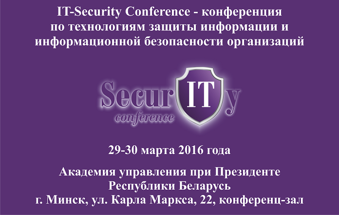 Уже 29-30 марта ЗАО «Инфопарк-проект» организует в Минске вторую IT-Security Conference при поддержке Оперативно-аналитического центра при Президенте Республики Беларусь, Национального банка Республики Беларусь, Ассоциации белорусских банков, Республиканской ассоциации предприятий промышленности «БелАПП» и Ассоциации «Инфопарк».