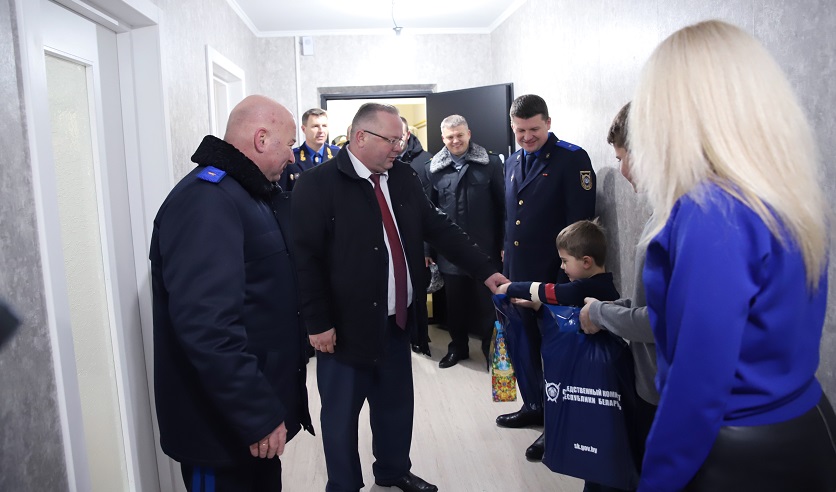 Глава ведомства вручил представителям организаций, участвовавших в строительстве дома, благодарности, а самым юным новоселам достались сладкие подарки и мягкие игрушки.